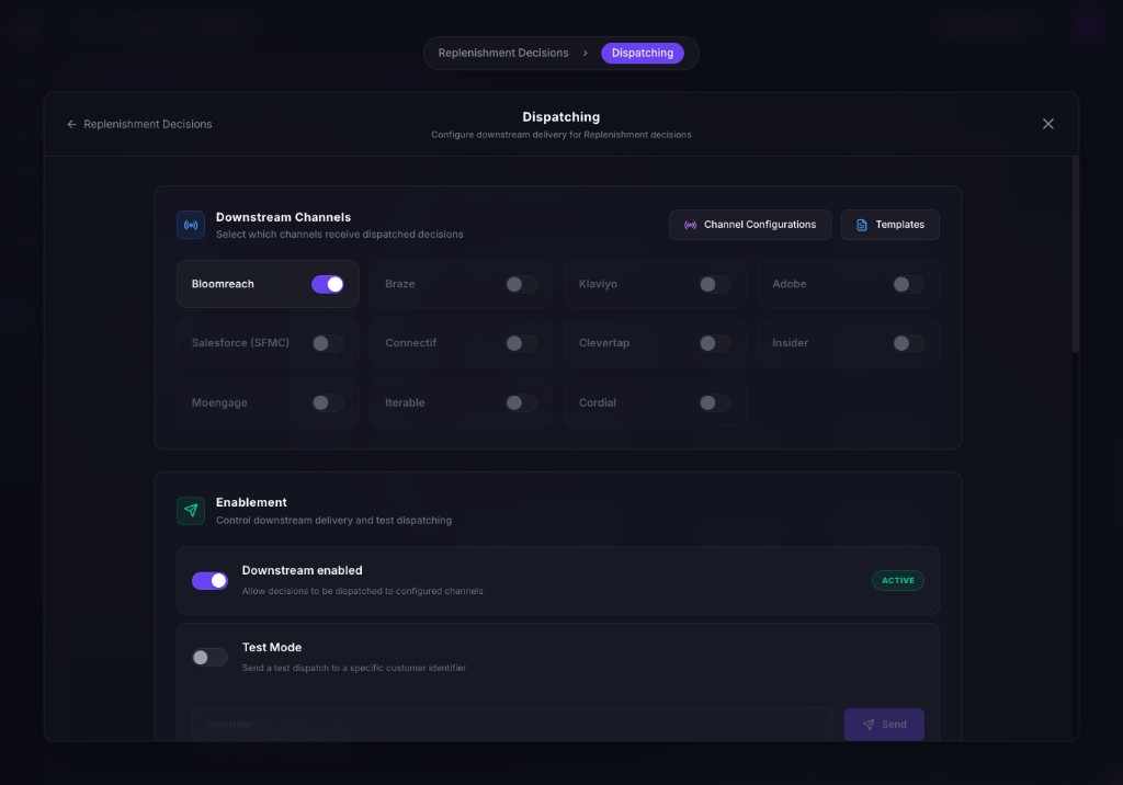 For brands with a data warehouse strategy. Replenit connects to your warehouse and pushes decisions directly into Bloomreach.