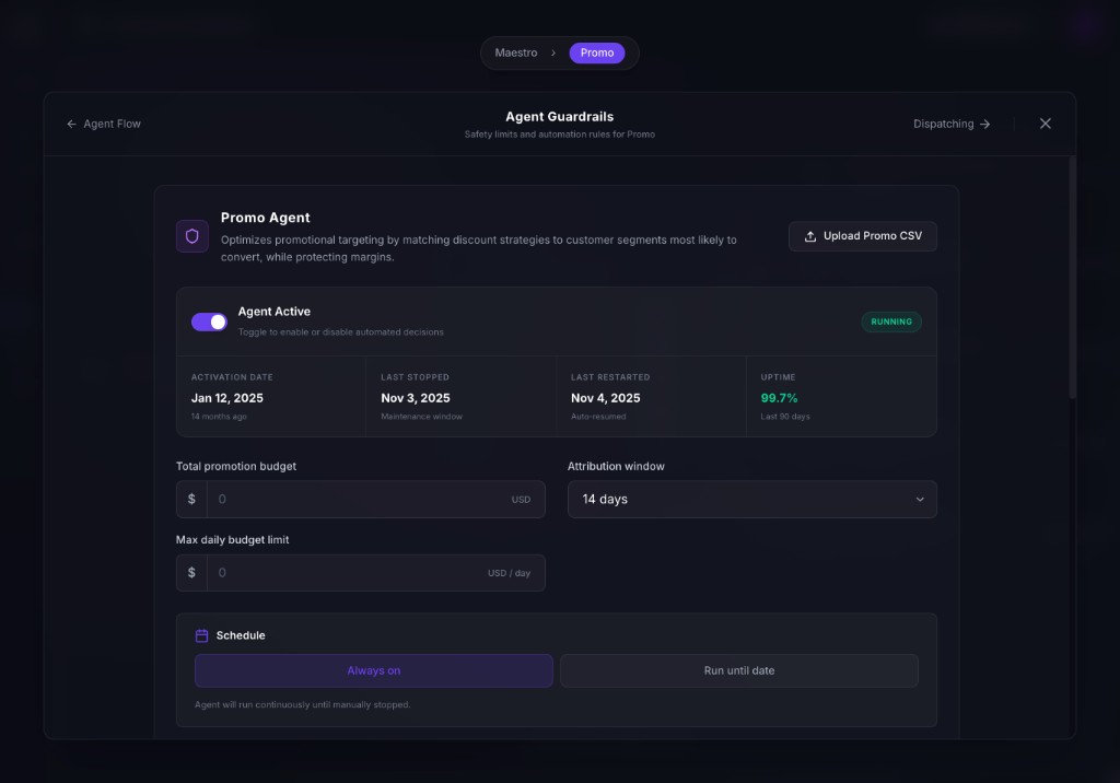 | Promotions | Blanket discounts | Margin-aware, ROI-optimized offers |