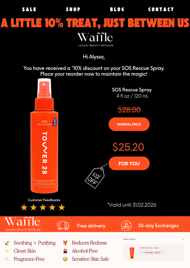 Example use case: Lower discount levels for gentle re engagement, cross sell encouragement, or when customers are close to purchasing but need a small nudge. Perfect for maintaining margins while driving action.